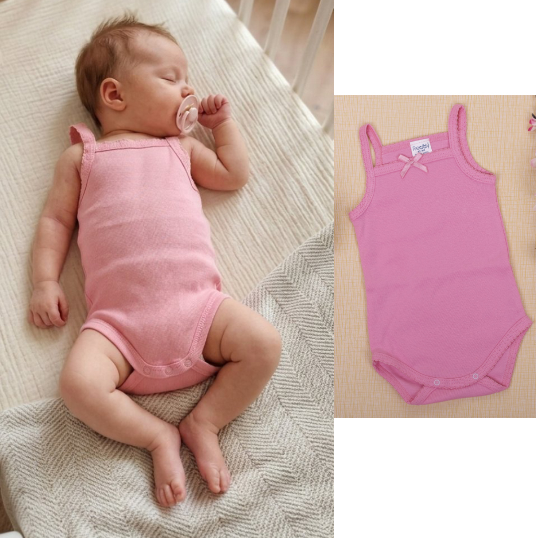 Bebi bodi bez rukava za devojčice. Bodi je od 100% pamuka i idealan je za kožu vaših mališana. Prijatan je za nošenje i lak za održavanje.