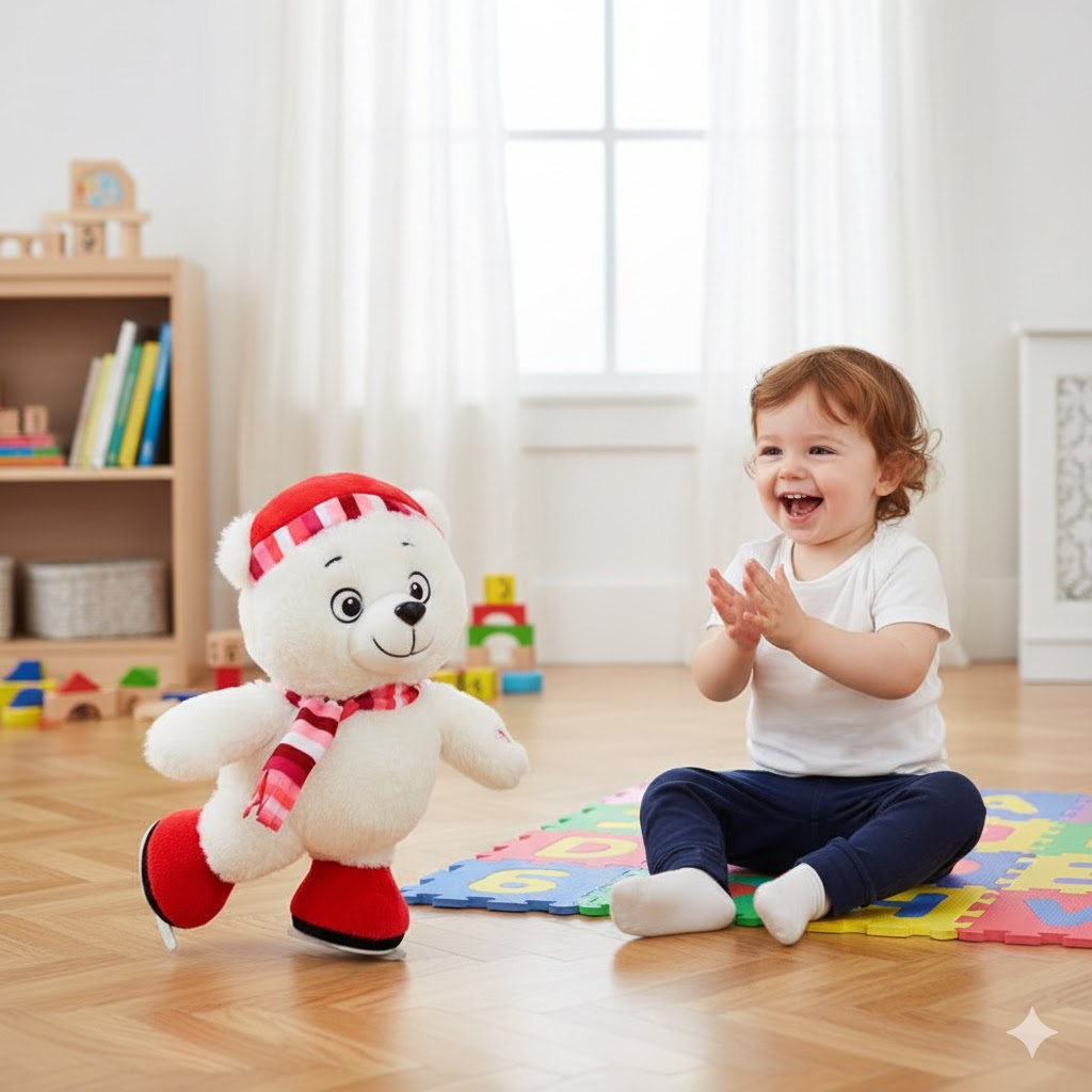 Ovaj preslatki plišani meda u zimskom outfitu kliza, peva i oduševljava svakim pokretom!