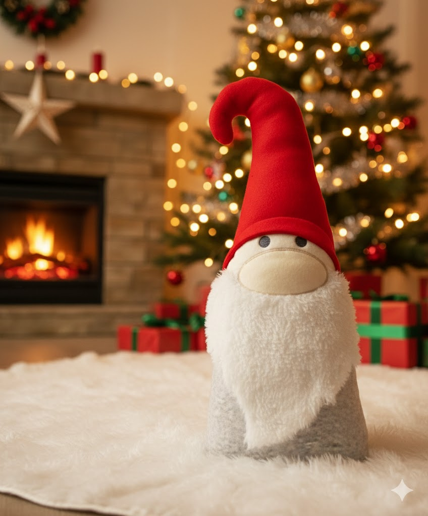 Dekorativni novogodišnji jastuk u obliku patuljka.