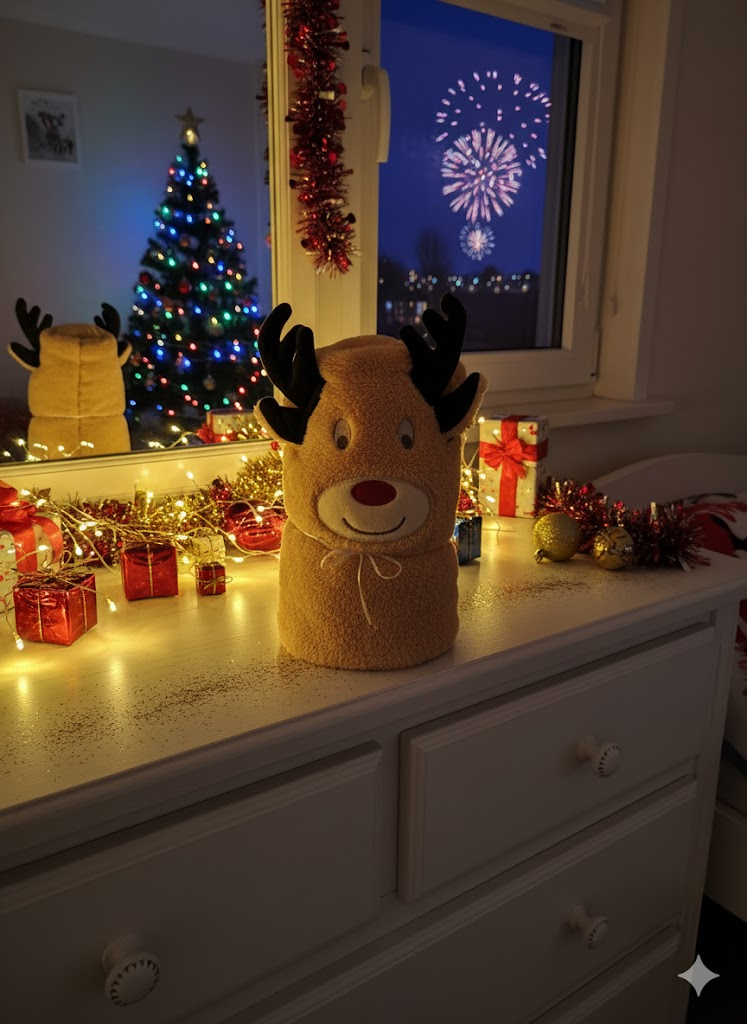 Bebi jednobojno ćebe specjalno dizajnirano za novogodišnje praznike u obliku irvasa. Idealno zavaše mališane i njihove mirne snove.