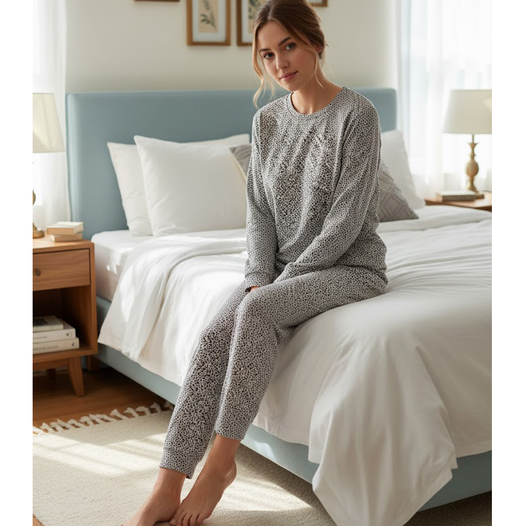 Uživajte u savršenom spoju mekoće, kvaliteta i modernog dizajna. Naša ženska pidžama izrađena je od pažljivo odabranog pamuka sa dodatkom elastina, što joj daje izuzetnu prijatnost na dodir, elastičnost i savršeno prijanjanje uz telo.