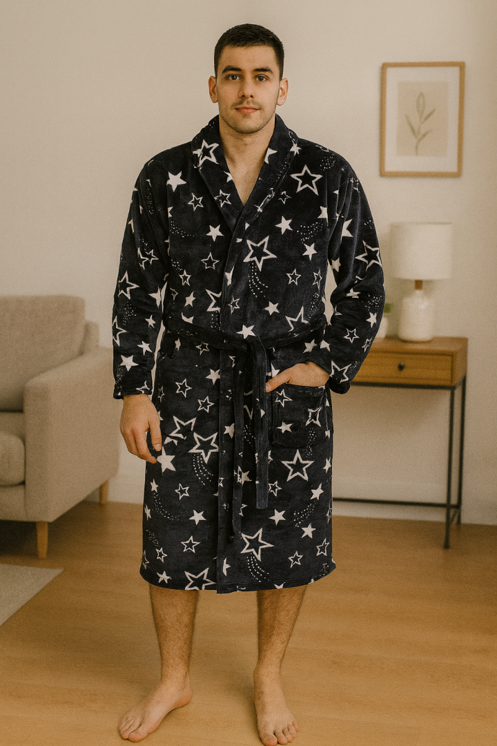 Naš kućni mantil izrađen je od mekanog, nežnog materijala (100% poliester) koji pruža osećaj topline i udobnosti već pri prvom dodiru. Idealan je za opuštanje kod kuće, nakon tuširanja ili kupanja, ali i za lenje vikende kada želite da se prepustite svom miru.
