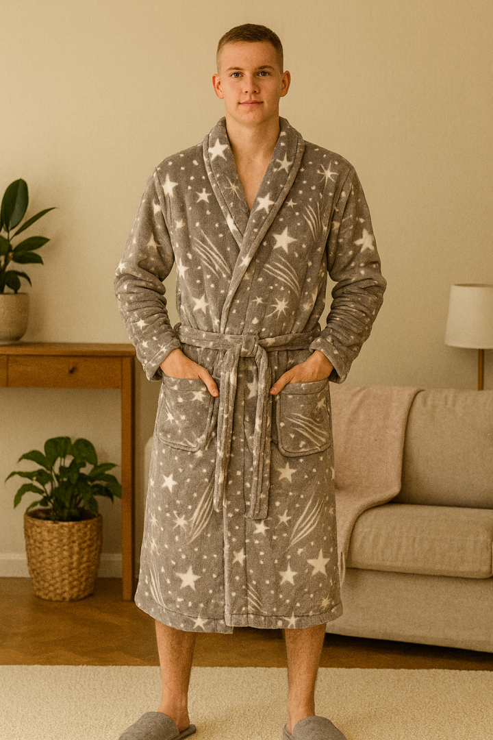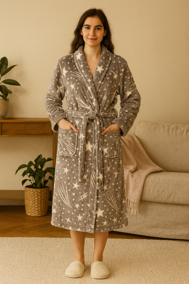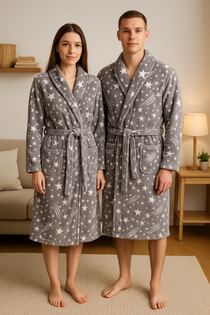 Naš kućni mantil izrađen je od mekanog, nežnog materijala (100% poliester) koji pruža osećaj topline i udobnosti već pri prvom dodiru. Idealan je za opuštanje kod kuće, nakon tuširanja ili kupanja, ali i za lenje vikende kada želite da se prepustite svom miru.